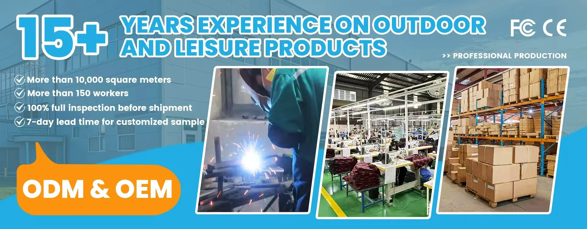 Wuxi Sunflower Textile CO .LTD is an OEM/ODM manufacturer with over 15 years ofexpertise in outdoor products. Our production site covers an area of over 10.000 squaremeters and has more than 150 workers. The annual output value isover 15 milion US dollars. Our products are particularly popular in the Europeanand American markets, such as theUnited States, Canada, the United Kingdom.Germany, etc. Our clients include supermarketssuch as cosotco,e-commerceplatforms like Amazon, and global brand distributors. The product category includes varieties of Folding chairs for Stadium, Camping, and fishing.Outdoor leisure products and Pet products. We mainly offer the one-step service fromresearch&design,production.inspection to shipment. We have a professional qualityinspection team. Allproducts undergo multiple 100% quality checks before leaving the factory. In addition, we are appreciated any contact for business cooperation on OEM or ODM.
